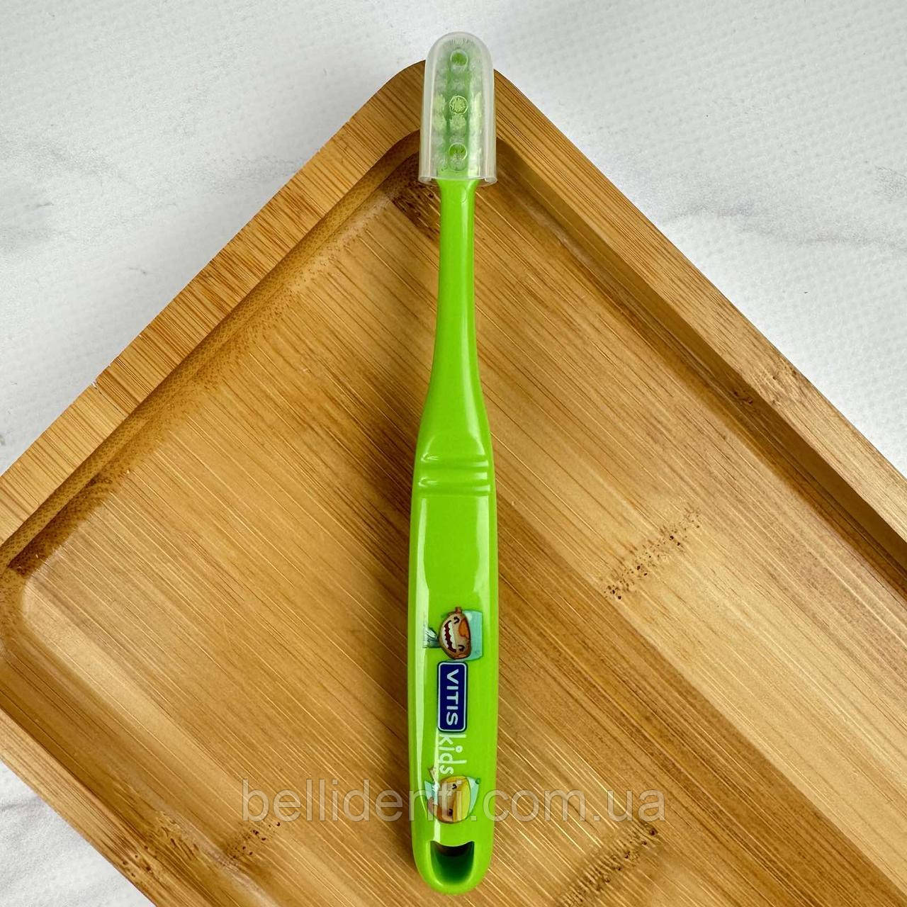 Дитяча зубна щітка VITIS KIDS має дуже маленьку голівку і м'які щетинки.